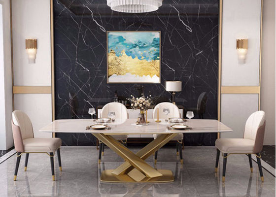 A mesa de jantar de aço inoxidável de mármore luxuosa clara, cada processo da seleção material, cortar, lustrando ao processamento profundo é controlada restritamente, o teste padrão de pedra é clara, os cantos arredondados é lustrada, a textura é uniforme, a estrutura é resistência estável, de alta temperatura, resistência do risco, resistência de corrosão, nenhuma radiação, e deformação difícil e outras características. Resistente, fácil de limpar de alta temperatura e durável.